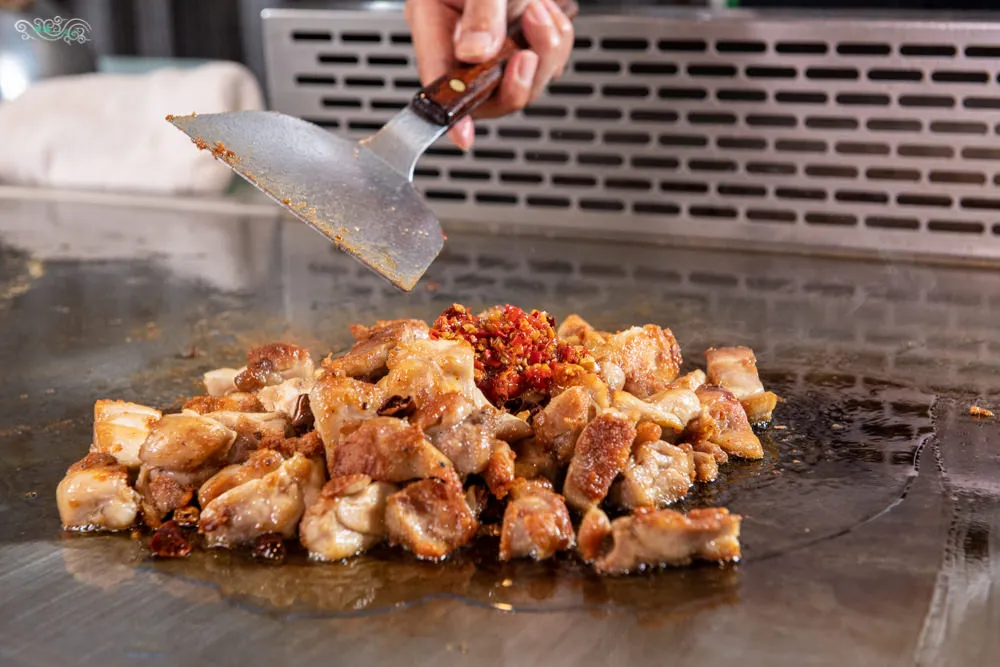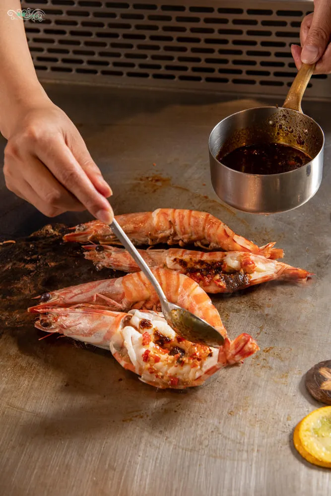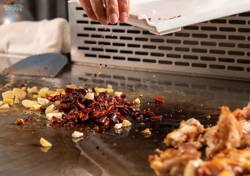 這一夜凌雲體驗的是辛湘川辣鐵板,僅接受預約且需六人以上預定,價格為1480元。因鐵板燒是板前服務,可以直接和主廚溝通你能接受或喜愛的辣味輕重程度。