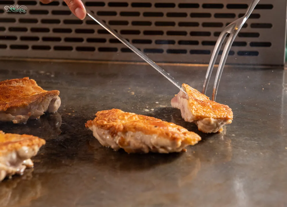 圖|去骨的雞腿先放到鐵板上煎。