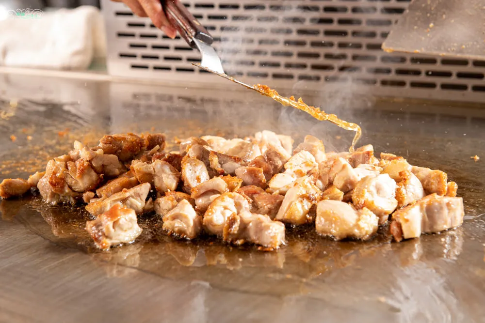 圖|切丁後的雞肉,淋上特製醬汁。