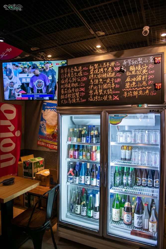 圖|冰箱內的酒品種類相當多,黑板上的弄爹秘製小菜有很多好料喔。