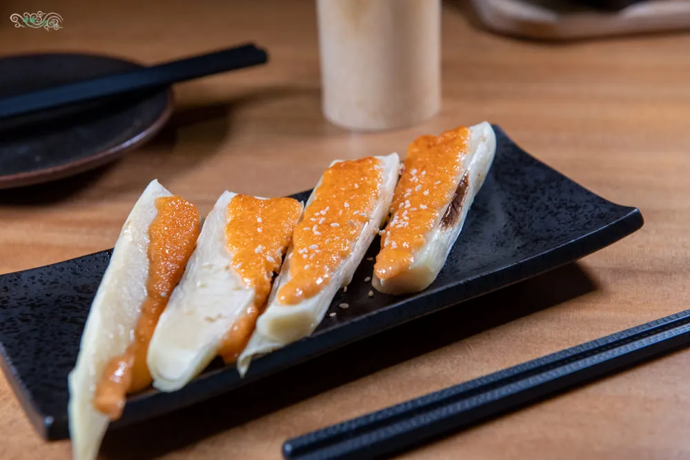 一上桌就香氣逼人,皮脆肉嫩的滋味結實香甜,濃郁的肉香衝擊味蕾,帶有Q勁的嚼感,沾點撒上七味粉的美乃滋,鮮嫩滋味層層堆疊,這舌尖上專屬的美味協奏曲,徹底寵壞味蕾。