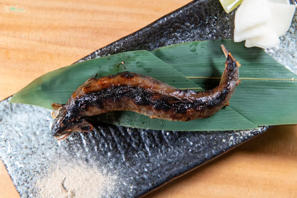 這是香魚一夜干,皮很脆很好吃,肉質細嫩鮮美有股自然的海風鹹味,不屬於濕潤的肉質,沾點胡椒粉更添風味。