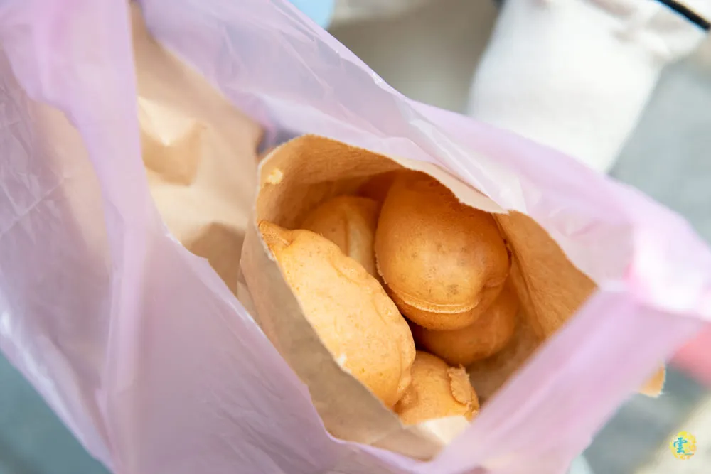 4個才10元,凌雲買了50元跟女王還有小凌雲分著吃,只是大多都被小凌雲搶光就是了。生意相當好的派頭哥雞蛋糕,所以排隊拿到的都是剛出爐的溫熱雞蛋糕,雞蛋糕就是要剛出爐的才讚,整袋拿在手上,暖暖的蛋奶香直叫人口水直流。