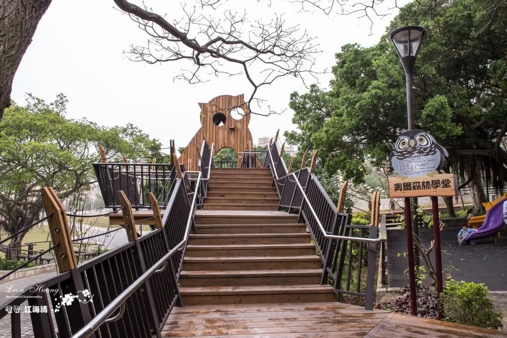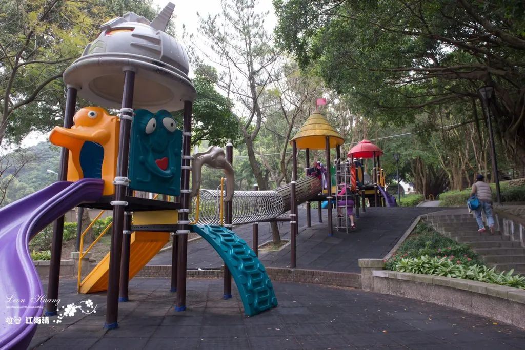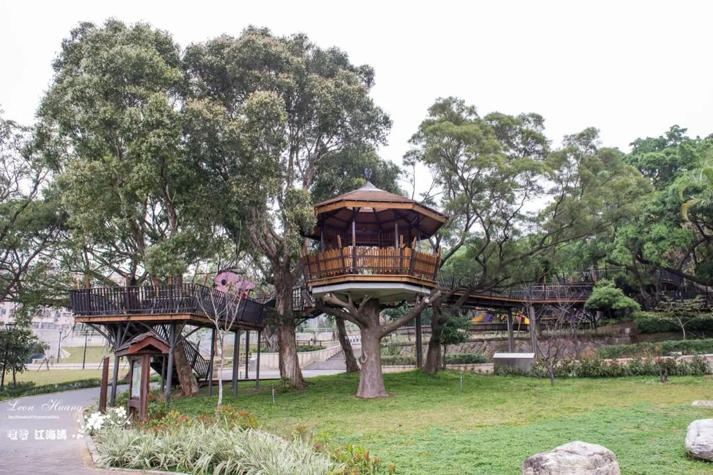 公園內的樹屋群跟遊樂設施,可以讓小朋友在這玩上一整天說
