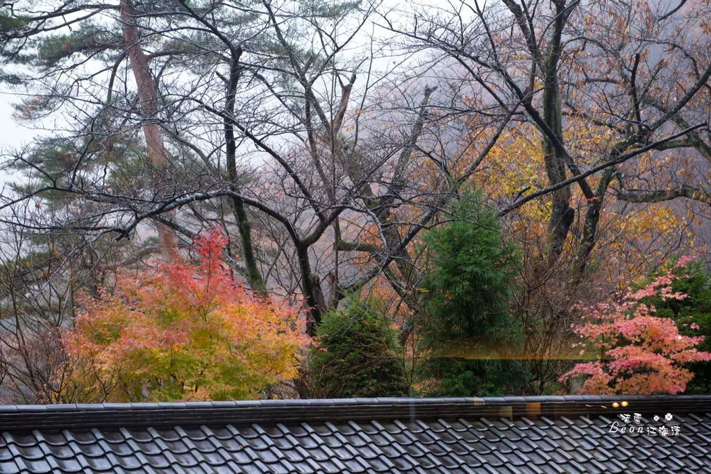 隔天一早窗外飄著小雨,但景色依舊迷人。