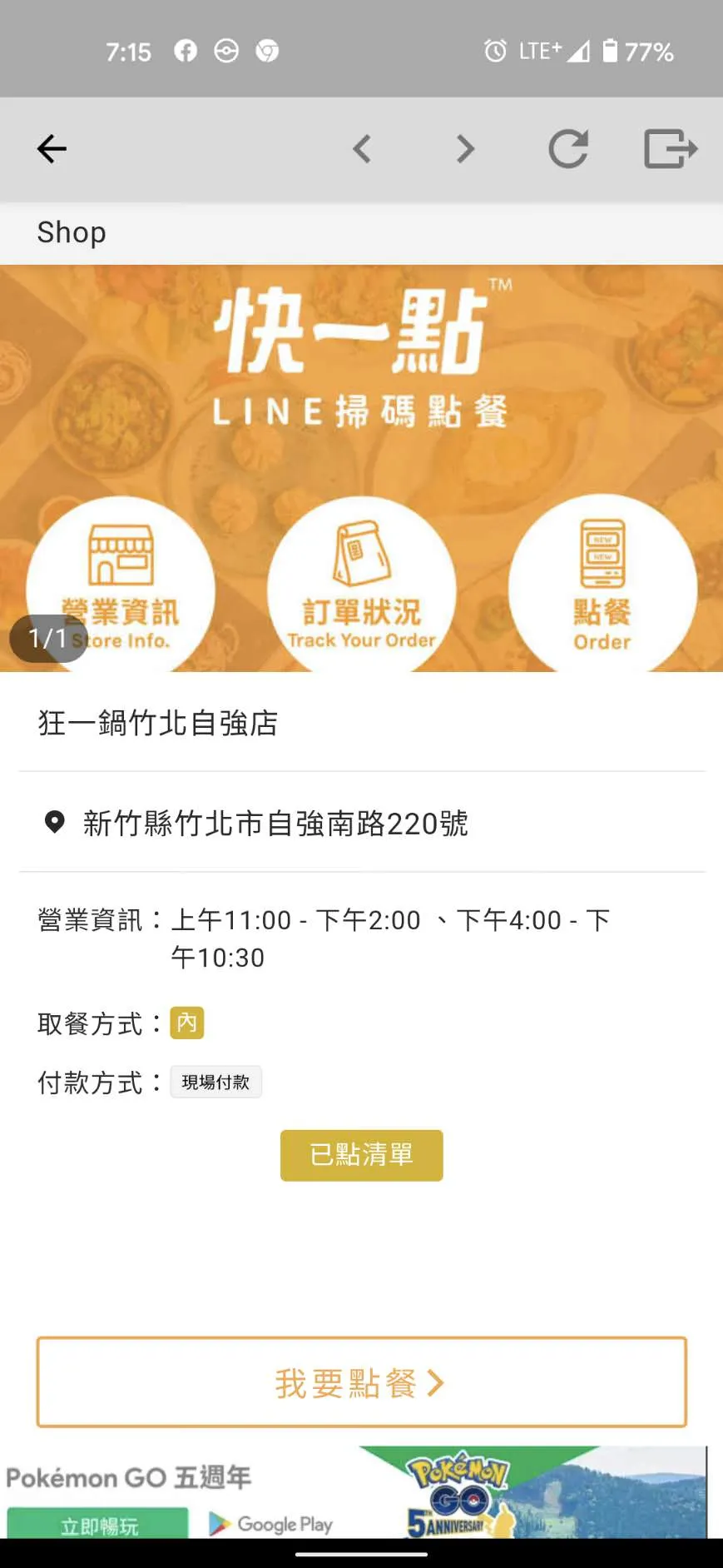 狂一鍋菜單 QRCode點餐環保方便