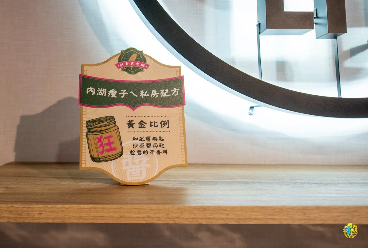 醬料區上方有個內湖瘦子ㄟ私房配方,上面有推薦的黃金比例是和風柚子醬兩匙、沙沙茶醬兩匙,再依照喜好加入辛香料。同行友人依照配方也調製了一份,帶有酸甜味的和風醬,讓整體感受多了些許甜味,如果不喜歡太甜的朋友,或許和風柚子醬可以改為一匙就好。