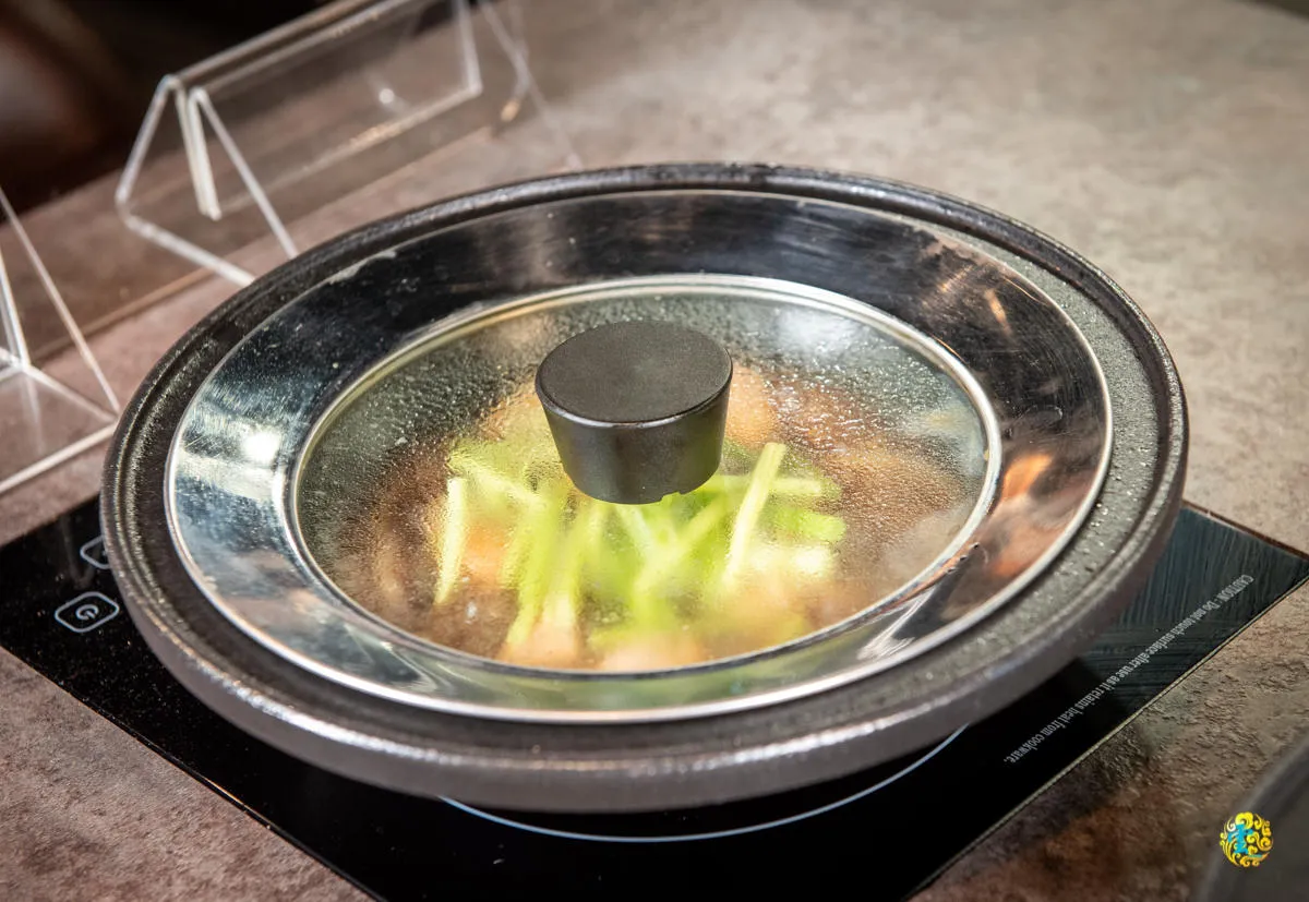 每個桌上都附有一份菜單,不過實際點餐則是掃描QR Code,透過手機來點餐。首先選想吃的火鍋的口味,之後依據喜好選擇牛肉、豬肉、雞肉或者是海鮮等肉品,再來選擇麵飯等附餐,如果覺得吃不夠,再加點美味即可。其中人氣很夯的有『酒香花雕雞鍋』、『生炒花枝鍋』、『麻辣臭豆腐鍋』與『功夫排骨酥鍋』這四鍋,點個海鮮三品(海上花)只要$128 ,海鮮五品(海波浪)也只要$198,最低$289起,就有美味的爆炒石頭鍋(梅花豬肉盤)。點個鍋,點個海鮮,再點個美味小吃單點,飽足又滿意。