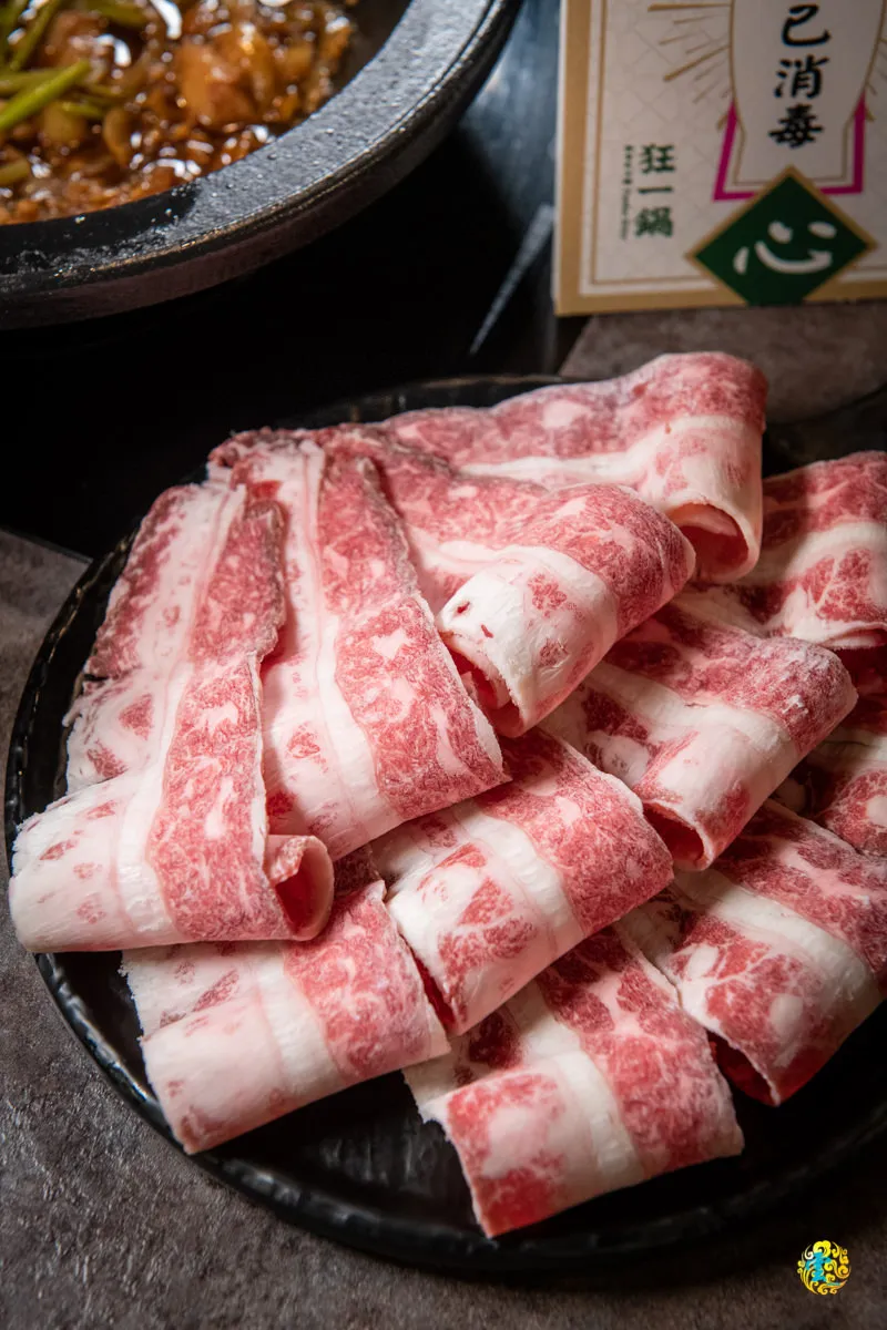 澳洲和牛雪花油脂多一點,勻稱分布的油花,給的厚度也很有誠意,簡直是品嚐酒香花雕鍋不可或缺的極品美味。