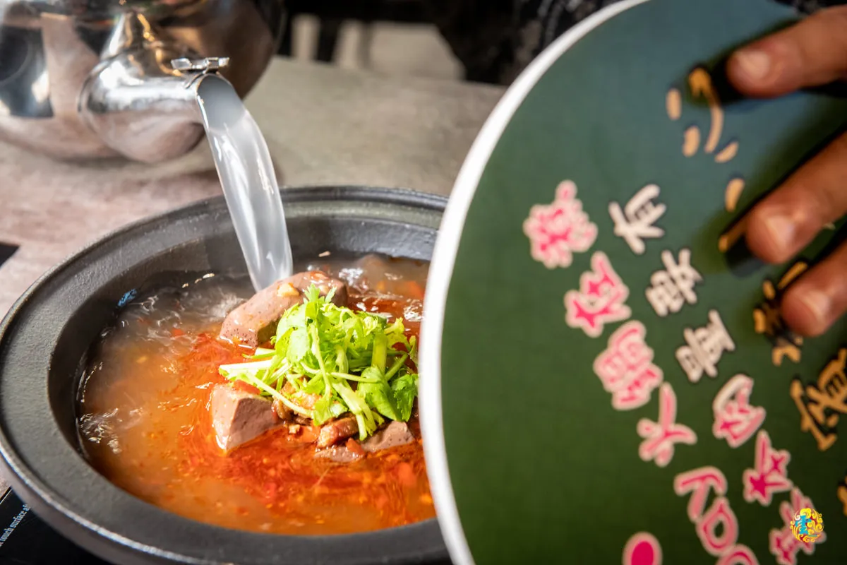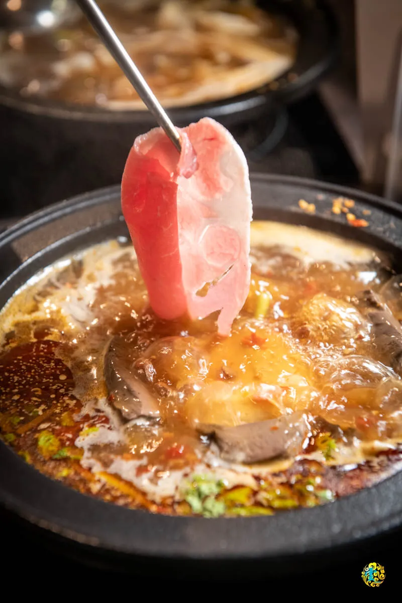 圖|吸附香辣湯底的豬肉片,讓美味更加分。