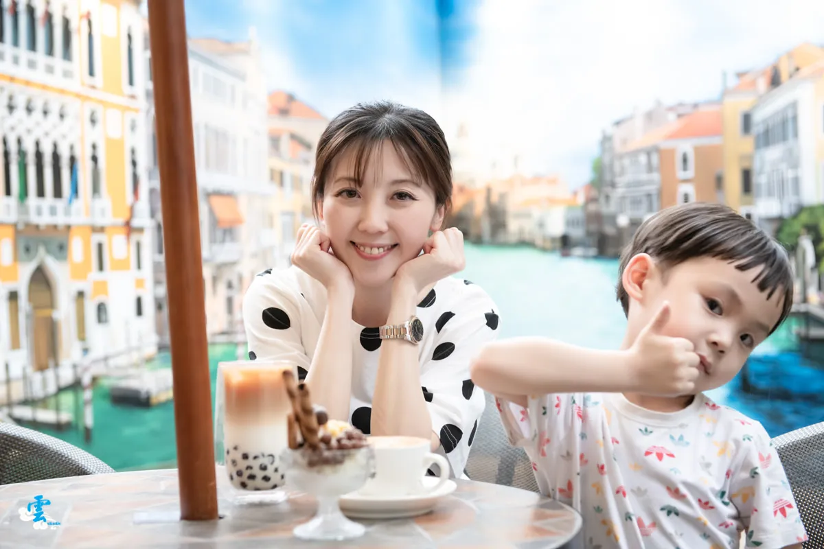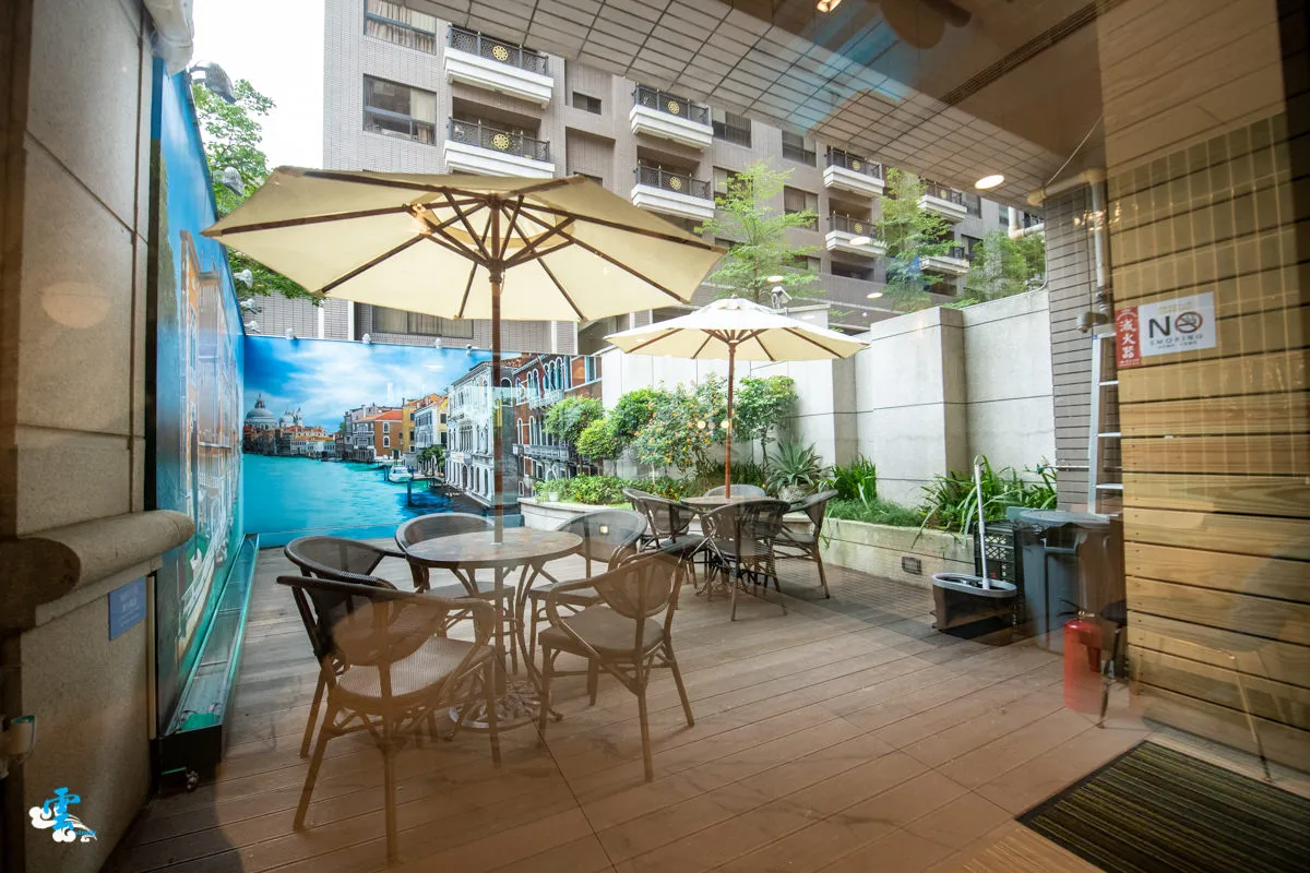 在一樓的後方有個絕對要到訪的露天點,這裡只有兩個桌位,坐在露天的座位上,頭頂遮陽傘,印入眼簾的是威尼斯河畔的景色壁貼,一秒讓你拉近與威尼斯河畔喝的距離。這裡不只冰淇淋好吃,口味還非常多樣化,重點是可以讓你瞬間來到威尼斯河畔喝下午茶~~~