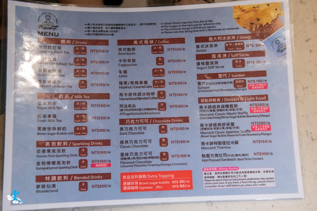 馬卡諦義大利冰淇淋菜單 Maccanti Menu