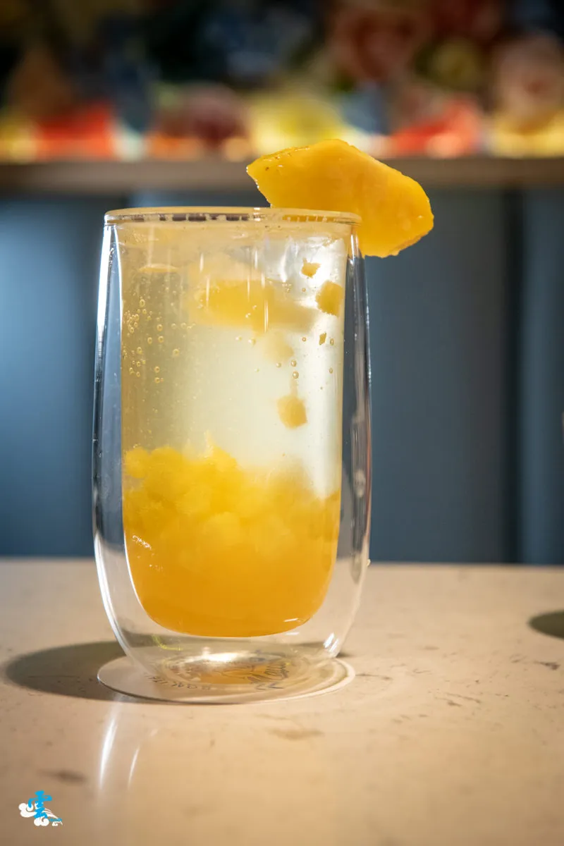 鳳梨氣味重,吃得到鳳梨果粒,酸酸甜甜的滋味,整體來說比百香果氣泡飲還要再甜一些。