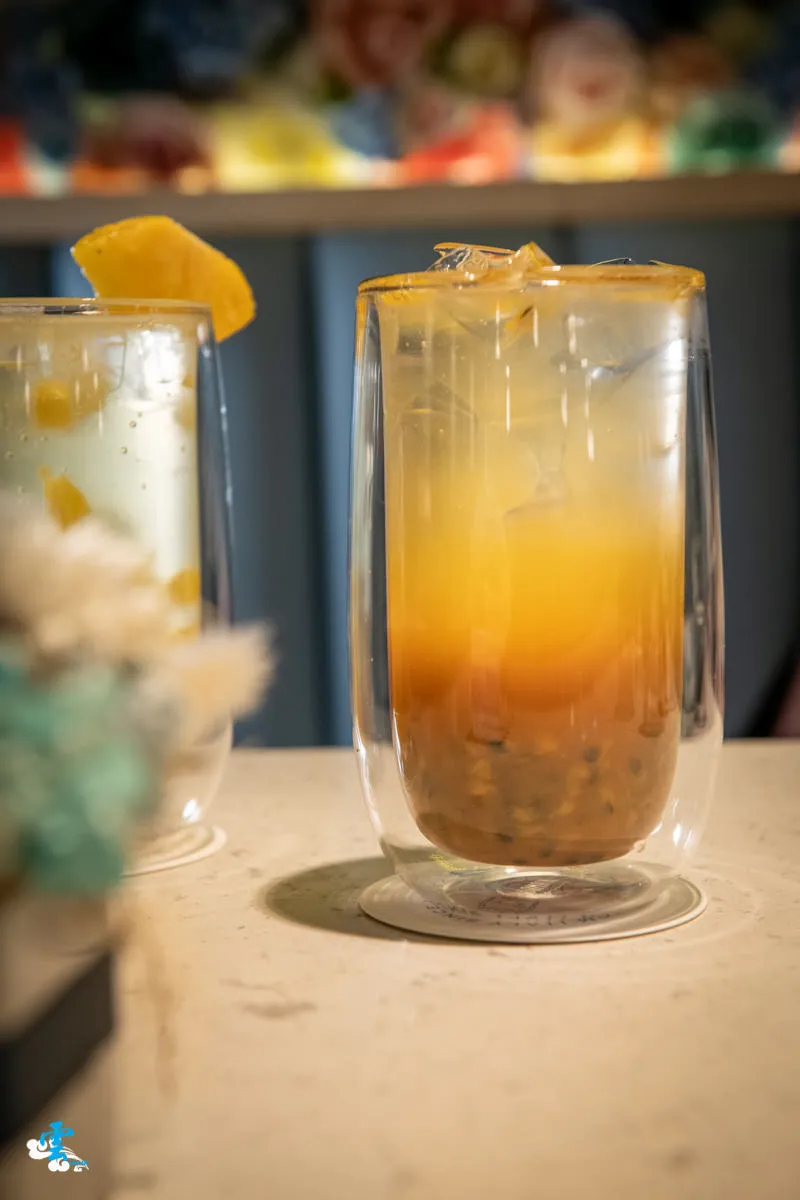 一點點酸一點點甜,還吃得到百香果粒,沁涼清爽的氣泡,細緻的譜出酸甜味道百科,跟鬆餅超搭。