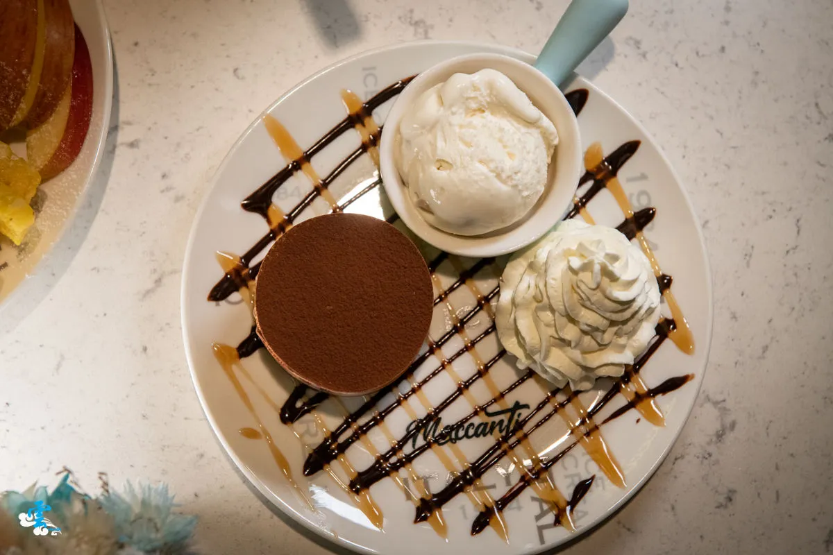 店員表示,舒芙蕾是從蛋開始現場製作,所以通常會需要一些等待的時間。蓬鬆的舒芙蕾很軟,彷彿會呼吸一般,超綿密的口感,馥郁的蛋香搭配淡淡的奶味,加上彷若入口即化的錯覺,給人超滿足的調和感。芒果冰淇淋帶著自然的甜味,入口黏稠又綿密,滑順完美的演繹令人滿意的下午茶甜點。