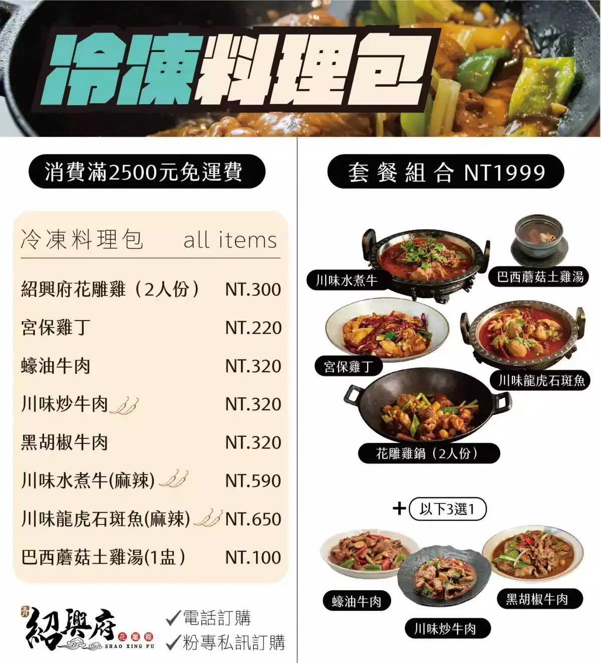 圖|冷凍料理包菜單。(圖片取自紹興府花雕雞)