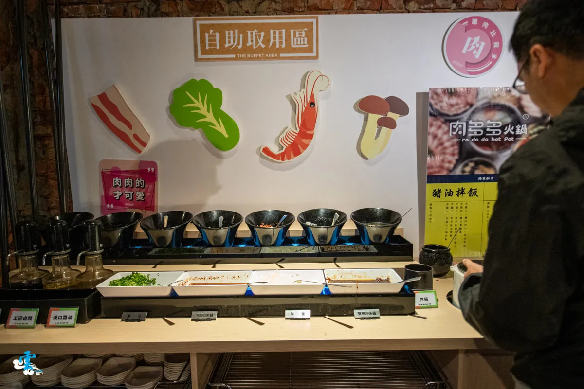 只要是點用套餐,原本的季節時蔬菜盤就會升級為「蔬食自助吧」。以生鮮蔬食吧來說,肉多多給的很有誠意,也感覺衛生又新鮮,一眼望去共有冬瓜、海帶結、蒟蒻結、三角豆腐、高麗菜、白蘿蔔、紅蘿蔔、百頁豆腐、玉米、杏鮑菇、芋頭、絲瓜、番茄、馬鈴薯、金針菇、南瓜、青江菜、地瓜、大白菜、大陸妹等時蔬,種類超級多,還有一個很大的特色,雖然生意很好,現場來來往往夾菜的顧客很多,但是菜盤始終都呈現滿的狀態,因為店員很勤的巡視,只要有菜缺少會立即補上,凌雲覺得這點真的很優質。