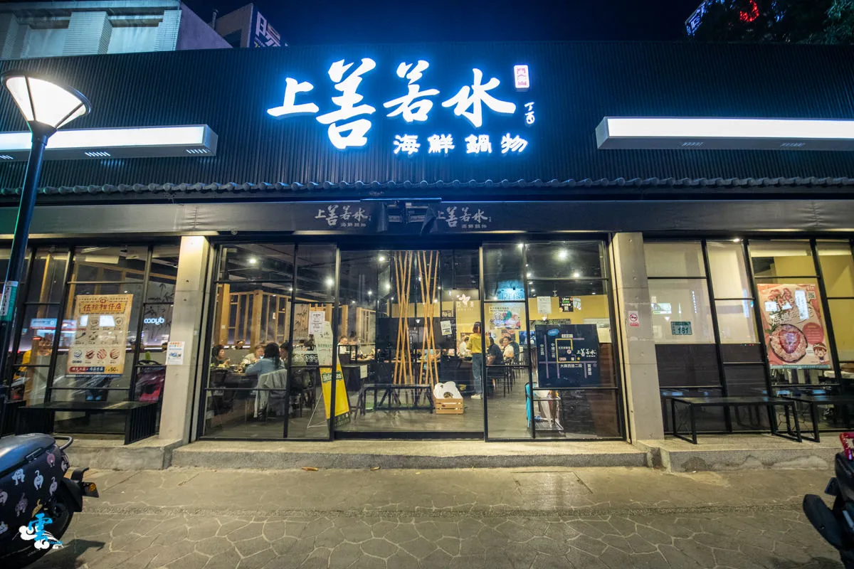 上善若水海鮮鍋物位在桃園區大興西路二段上,每次經過都會被他醒目的招牌與特別的名字所吸引,這次特別前來品嘗看看這間網路上口碑很好的火鍋店。上善若水沒有特約停車場,騎車的話,大興西路周邊有很多機車停車格,開車的話,可以停在麥當勞正後方的天天停車場大興站,大興西路開往中正路方向,注意右手邊有間肯德基,在中埔二街右轉永順街,接著於永順國小正門口右轉即可進入停車場,️車停好後沿著麥當勞得來速道路走到大興西路,上善若水就在左手邊。