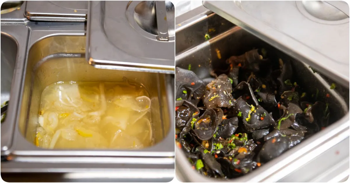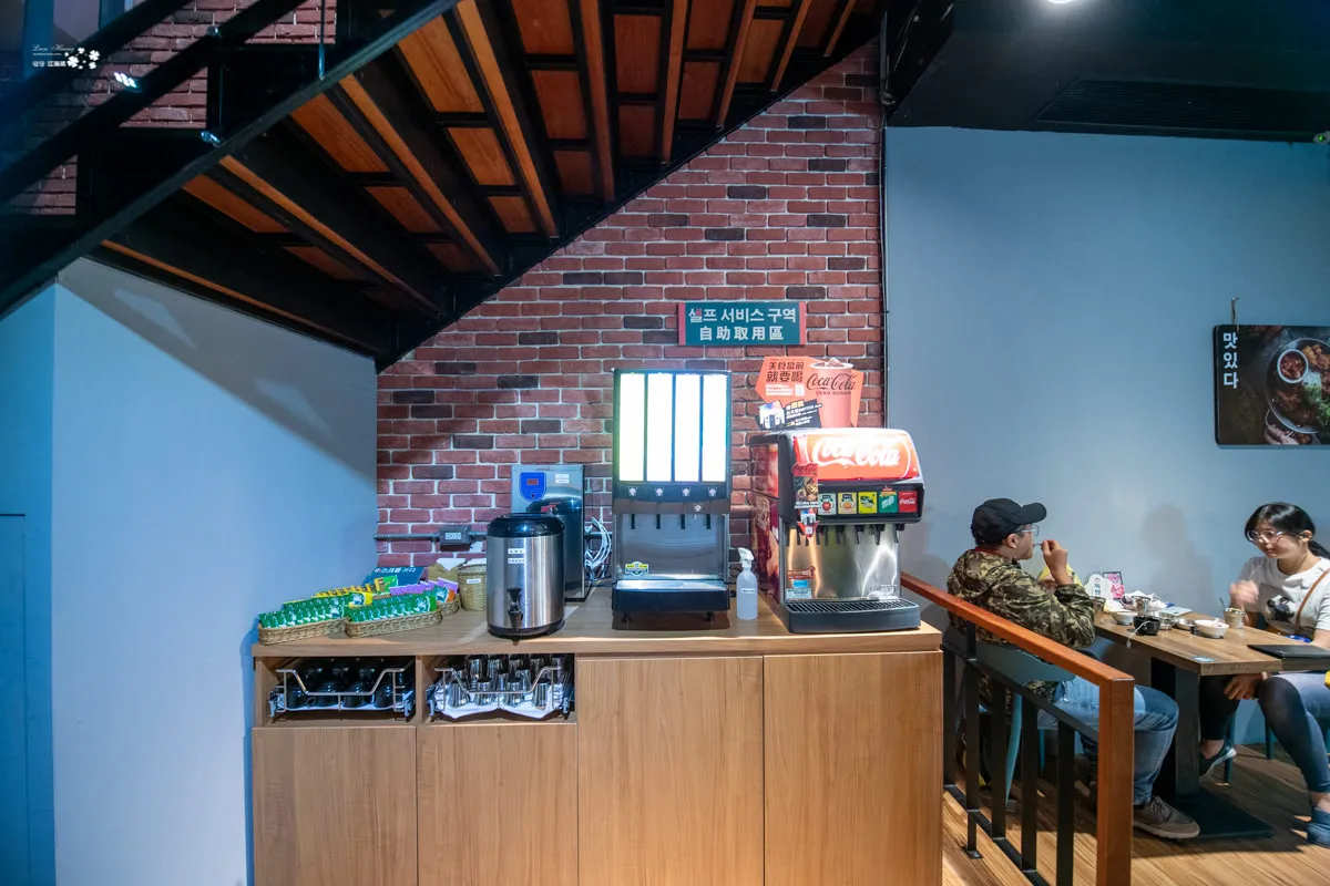 辛韓道的餐具與杯子都忠實呈現韓國在地風貌,讓你免出國就能嚐到韓式滋味,還能感受韓式氛圍。包含各式冷熱飲的吧台與韓式小菜自助吧,一二樓都有提供,全部都是無限享用。韓式小菜自助吧提供韓國泡菜、韓味雲耳、涼拌黃豆芽、涼拌海帶芽、泡菜干絲與柚香蘿蔔等。