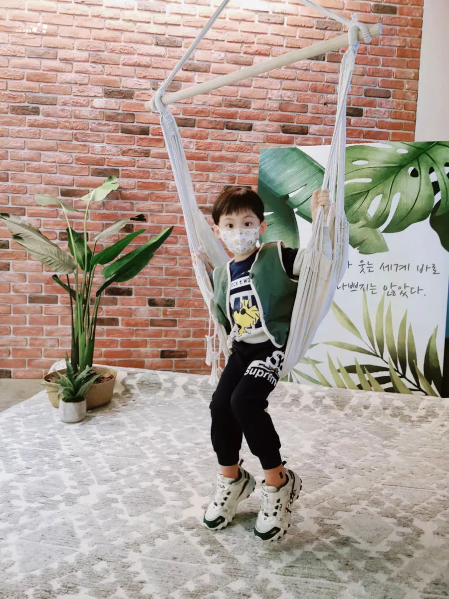 走至二樓窗邊,有個辛韓道重金打造的絕美打卡點,這個浪漫鞦韆真的超好拍,也是人潮聚集點,比一樓的還夯,感覺怎麼拍都美啊。