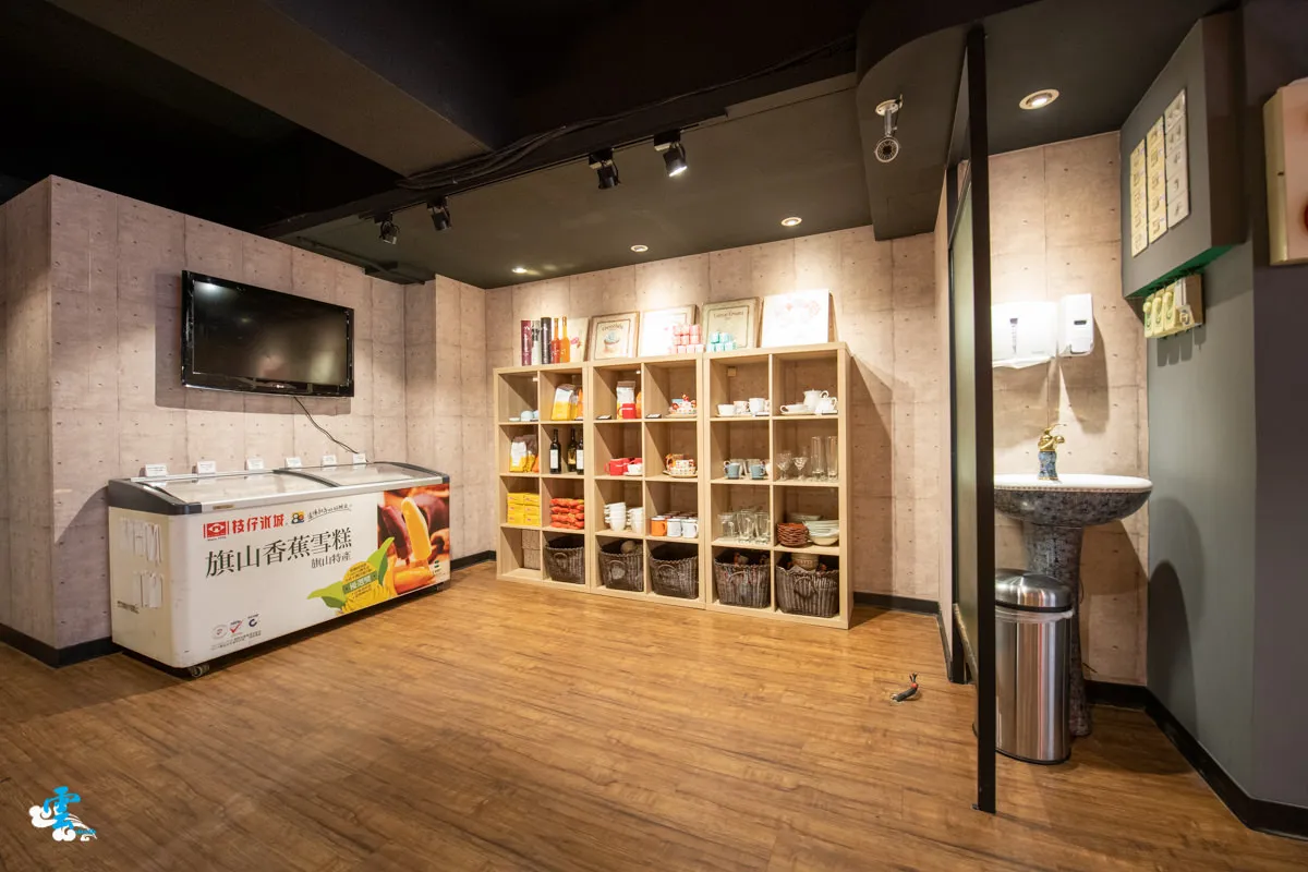 用餐區的一旁,貼心地設有洗手台,備有洗手乳與紙巾,感覺很棒。另一側則是咖啡豆、咖啡杯具、冰淇淋與生鮮食材的展示與販售區。