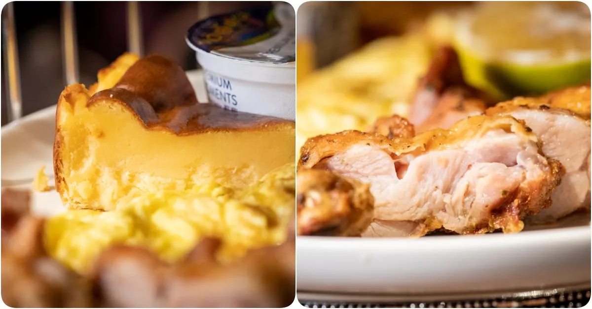 汁多美味的紐西蘭骰子菲力,與吮指美味的香草檸檬雞翅,兩者香氣是當中之最,相互交疊的刺激嗅覺。雞肉有咬勁又帶Q度,鮮嫩柔美的骰子菲力,帶來令人回味的美食深度。柚香沙拉與季節水果等,能適時的一解油膩。光滑水嫩的法式煎蛋,扎實甜香的黃金脆薯,綿密細緻切片蛋糕,每一種食材都述說各自的故事,在這舒適優雅的用餐環境,很適合在這寫下一頁悠閒的午後詩篇。