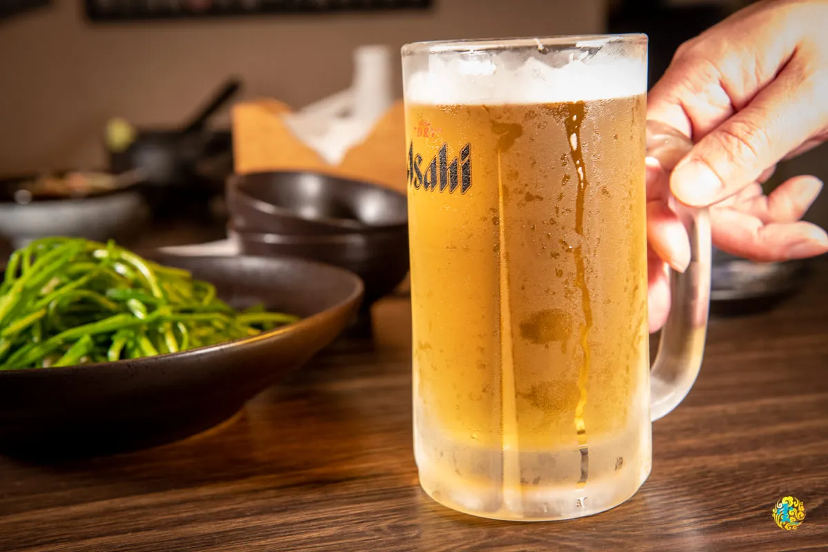 下班後來居酒屋喝上一杯冰涼爽口的生啤酒,絕對是很棒的一種的放鬆。Asahi生啤酒細緻滑順的泡沫還算持久,醇厚的麥芽香氣四溢,在泡沫完全消失前,盡享那一飲而盡的痛快,清爽的酒體喝起來甘甜順口。 溫馨提醒:飲酒過量,有害〈礙〉健康