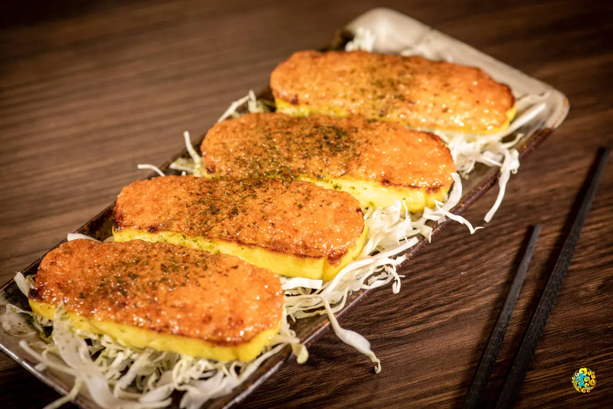 鬆軟柔嫩又多汁的玉子燒,厚度恰到好處,上面撲滿鹹香綿密的明太子,邊邊有特別烤過的焦脆很有存在感,上下交織出獨特的美味協奏曲,透過舌尖可以感受到豐富的味覺層次。