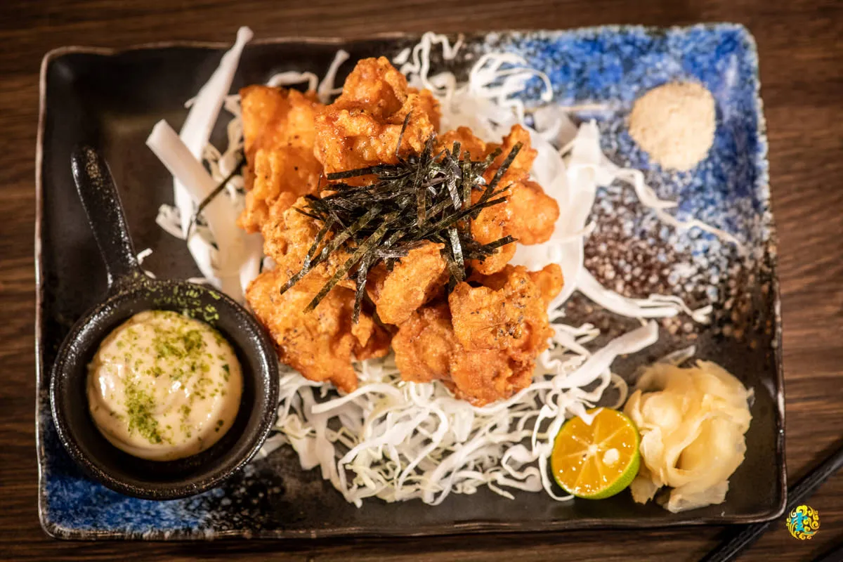 沒有沾粉直接油炸的日式炸雞,香甜結實的滋味與香氣衝擊味蕾,Q勁十足的口感,口味重的朋友沾點美乃滋,風味更佳。